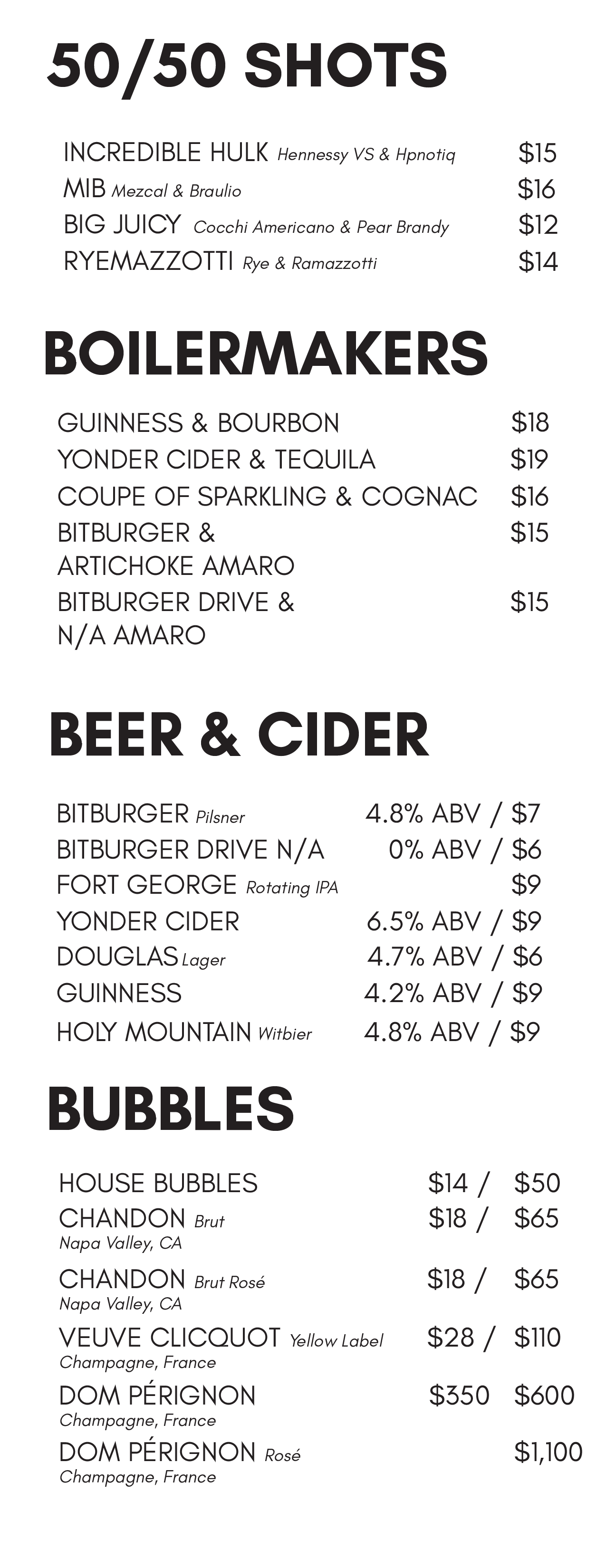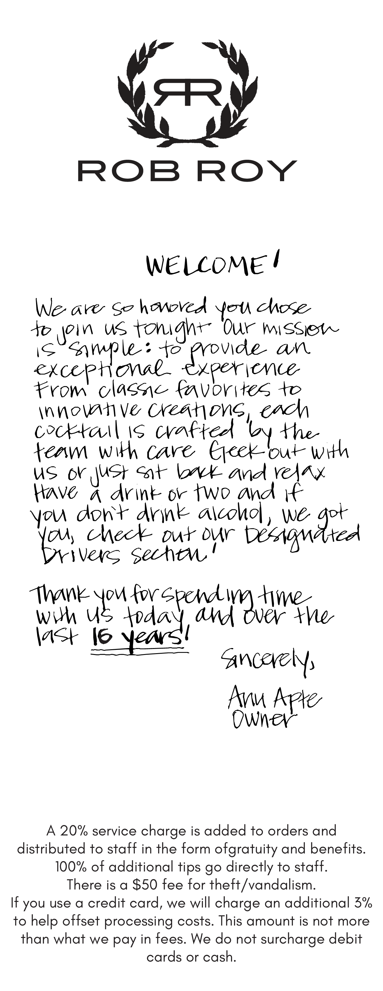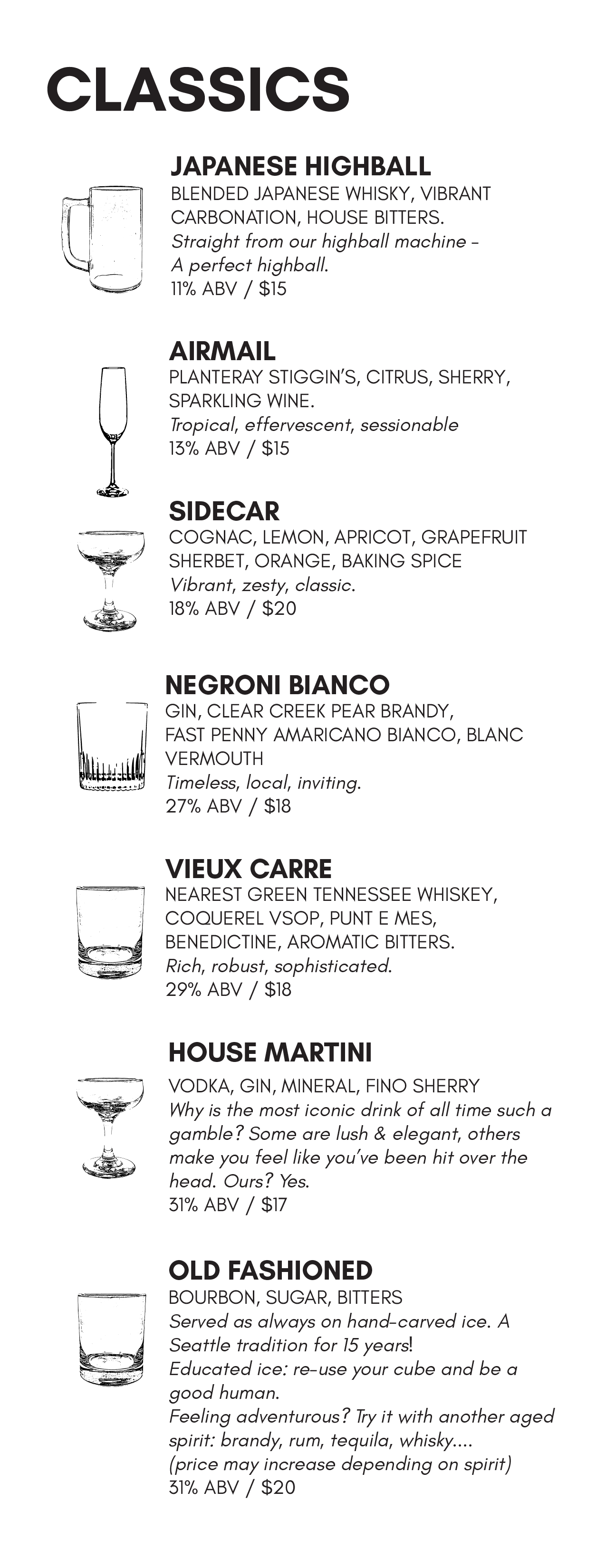 A CLASSIC COCKTAIL BAR 21+ ONLYReservations for large parties only. Otherwise, come on in!