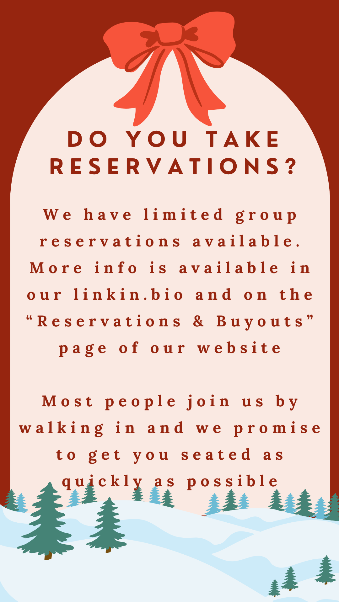 A CLASSIC COCKTAIL BAR 21+ ONLYReservations for large parties only. Otherwise, come on in!